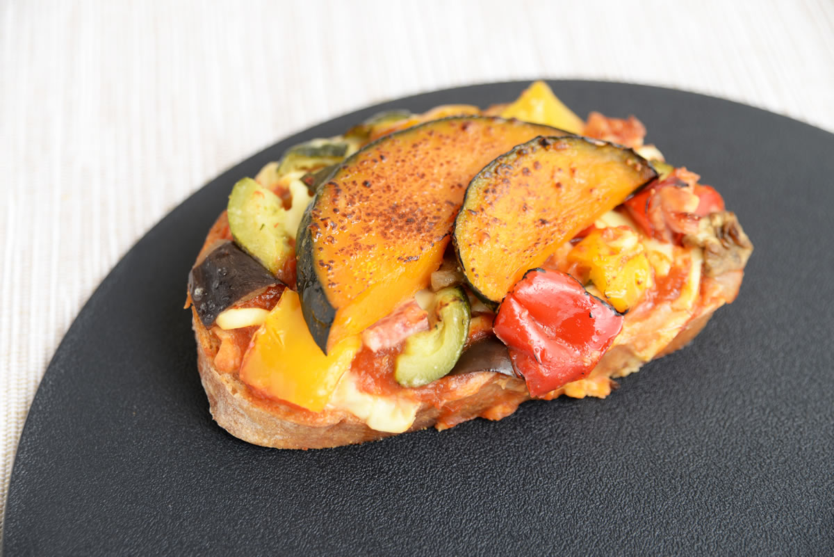 くんちゃまベーコンと4種野菜のタルティーヌ